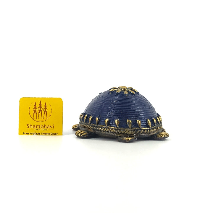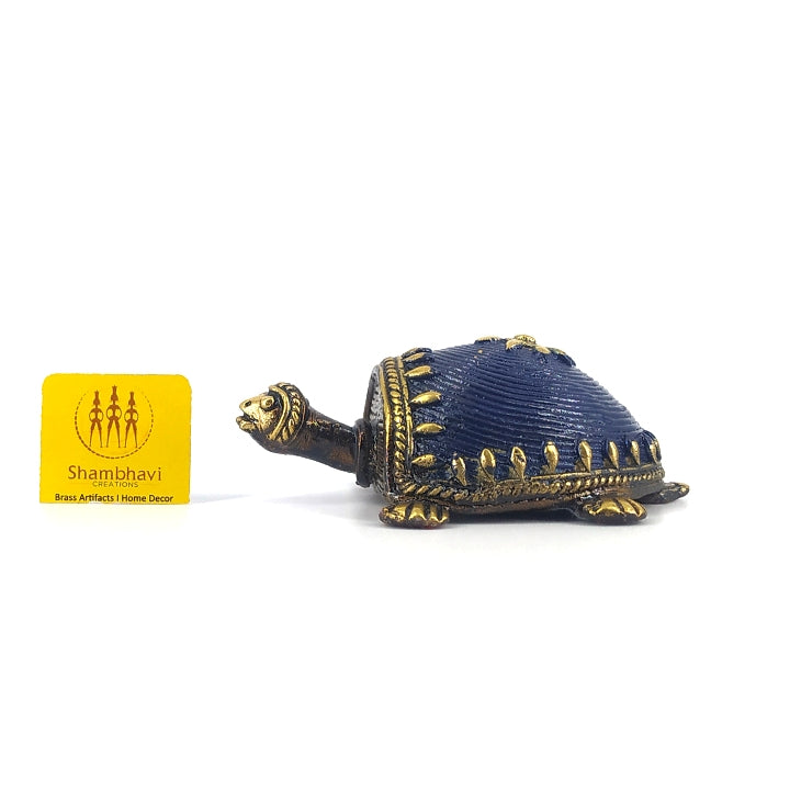 Add a touch of elegance to your home decor with this stunning Bell Metal Turtle Figurine, beautifully finished with hand-applied color detailing. Handcrafted using the ancient Dhokra art form, this showpiece statue captures the essence of traditional Bastar metalwork.