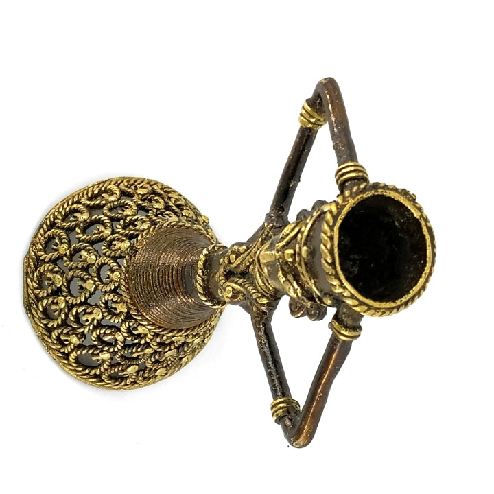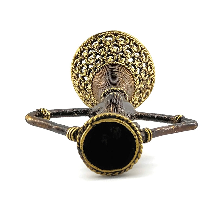 Cast in solid brass with a rich bronze-toned finish, the intricate surface details speak of patience, skill, and generations of metal artistry. When lit, the candle casts a warm glow that softens spaces and invites moments of reflection—perfect for evenings, festive décor, or mindful corners of your home.