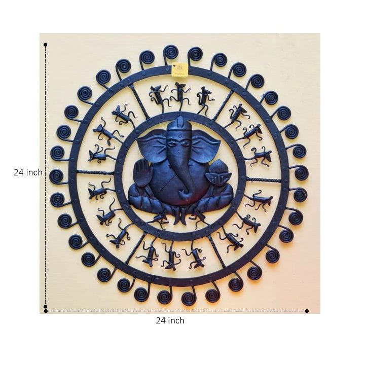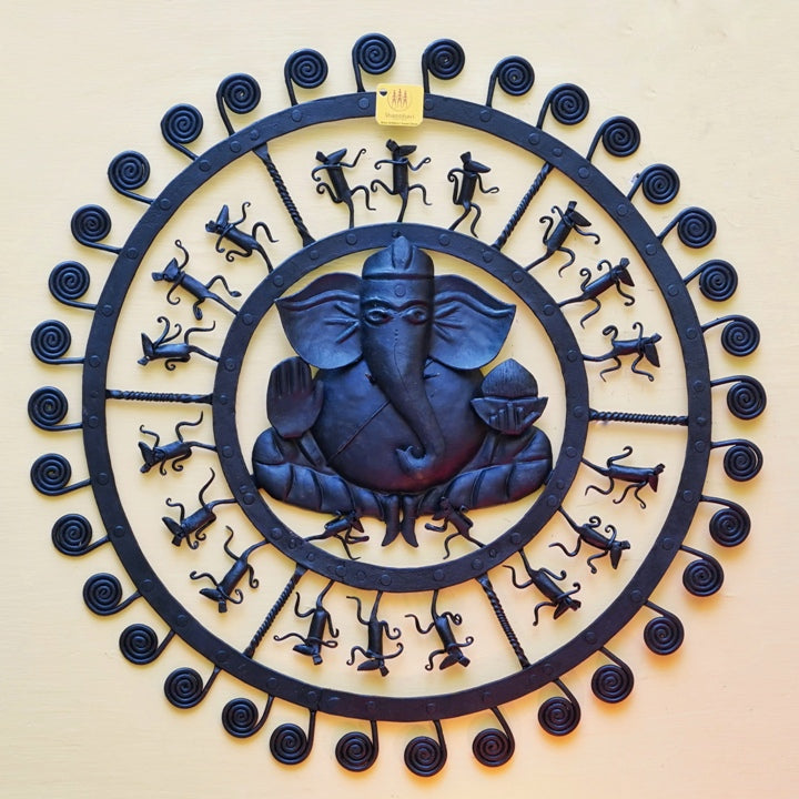 The Ganesha wall hanging is 100% handmade with traditional Bastar Iron Art. The artisans practicing this art form are a handful in number and are keeping this art alive. Using no advanced machinery, each part of the artefact is individually made and joined with one another using rivets. No welding is used.