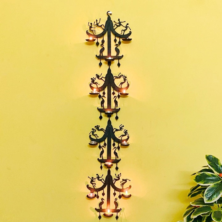 - The Wall hanging can accommodate a Number of Slots / Holders for Tea Lights/ Diya / Votive - 12