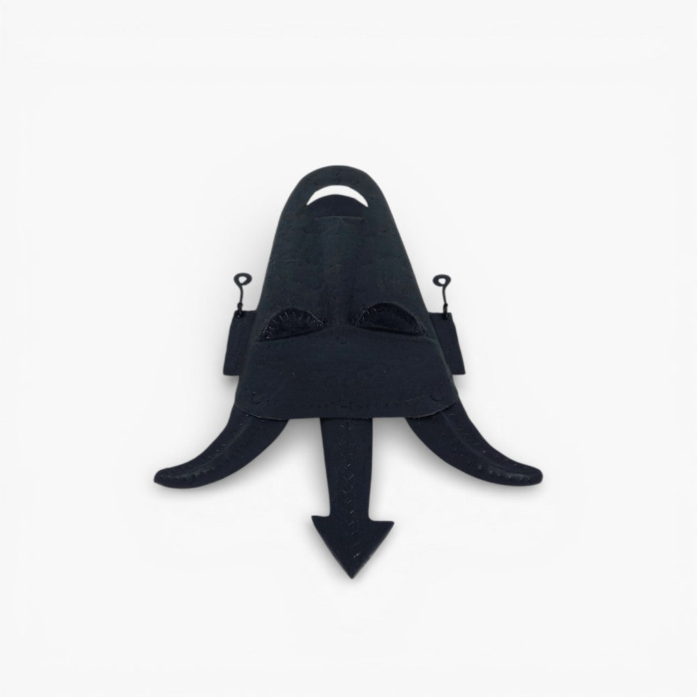 Elevate your decor with the Bastar Iron Art Trident Mask Wall Hanging. Crafted in the traditional Bastar art style, this black wall hanging features a captivating trident mask design.