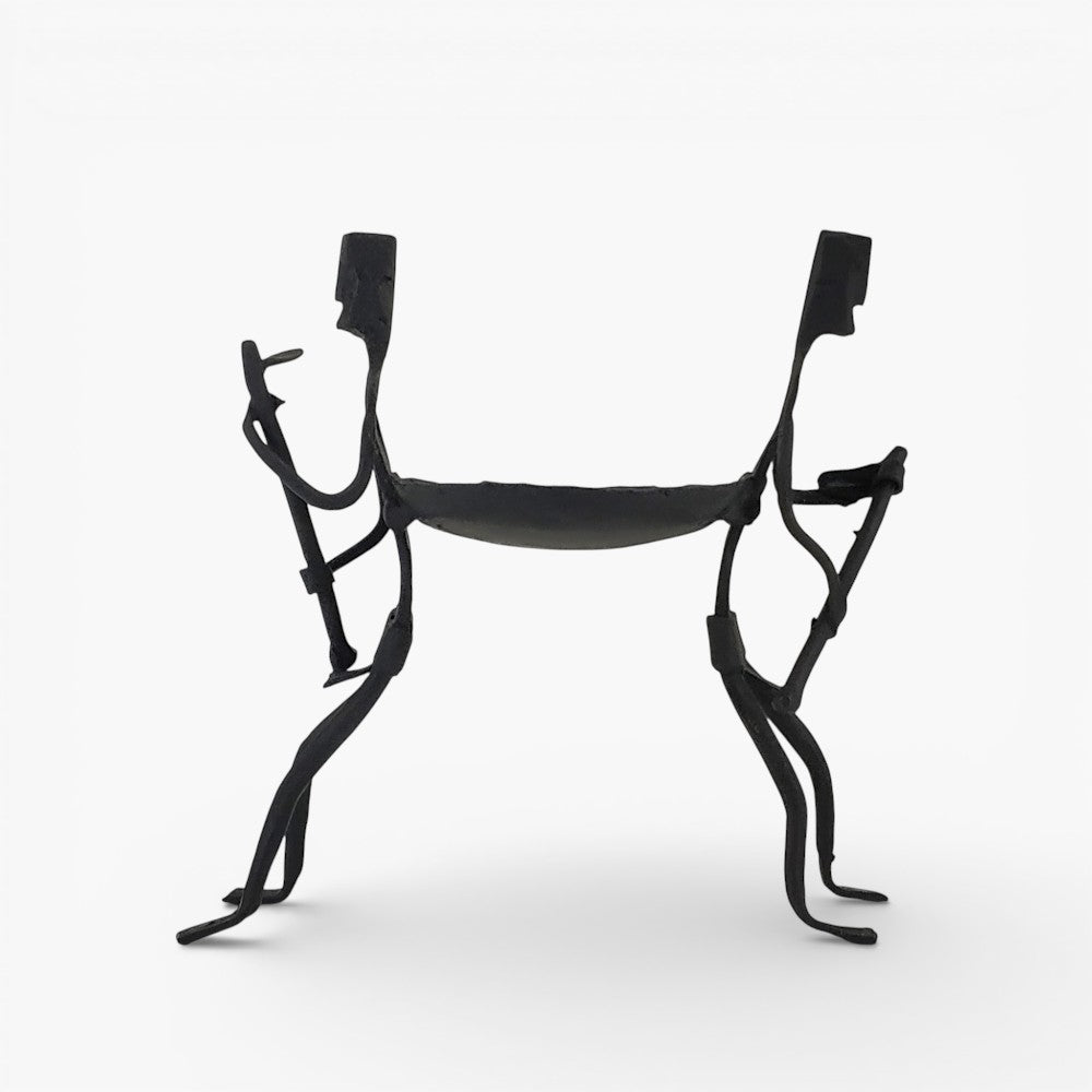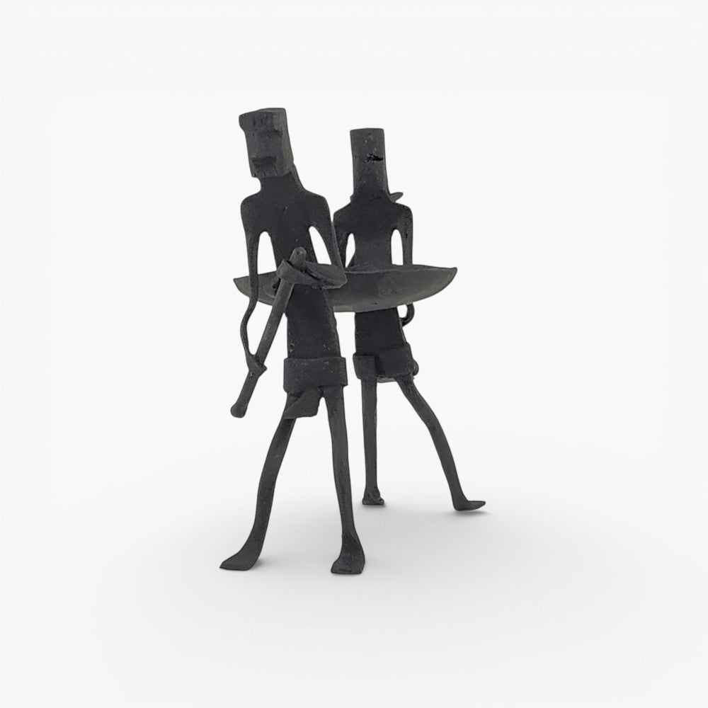 Forged by skilled artisans, the sculptural figures are intentionally minimal — allowing raw iron textures and hand-shaped lines to speak for themselves. The central tea light rests like an offering between the two forms, creating a soft glow that brings calm and quiet reflection into your space.